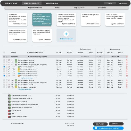 Интуитивно понятный интерфейс делает процесс создания сметы простым и доступным даже для новичков.